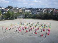 暑さ寒さも彼岸まで、と言いますが、ここ数日は急に秋めいてきて、すがすがしい晴天が続いています。今日の午後は運動場で6年生が運動会の練習に取り組んでいました。