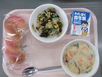 今日の給食のシチューにはヨーロッパ野菜の「カリーノケール」が入っていました。