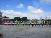 ※写真は運動会のスローガンと全校大玉送り、6年生の表現運動です。