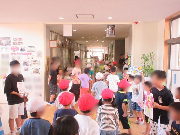 6年生と1年生のたて割り学級があいさつ運動を行いました。今日は6年2組と1年2組です。6年生と一緒に1年生も元気な声であいさつを呼び掛けていました。