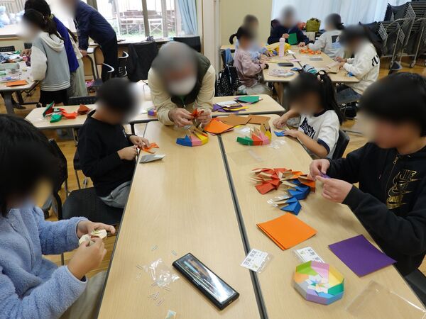 11/8の土曜スクールは、自主学習をしたあと「折り紙教室」を実施しました。今回の挑戦は、八角形の箱をつくることです。8枚の様々な色や柄の折り紙で8つのパーツを作り、それらを組み合わせて箱にしていきます。合計16枚の折り紙で、底と蓋の2種類の箱を作りました。時間内にみんな作れるかな?と心配しましたが、すごい集中力を発揮して、皆それぞれに色や柄を自由に組み合わせて作ったので、一人ひとり異なる素敵な「宝箱」ができました。