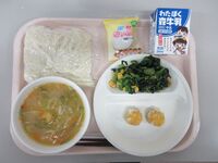 今日の献立:深谷ねぎラーメン、さいたまにんじんしゅうまい、小松菜とわかめのサラダ、バニラ大福、牛乳