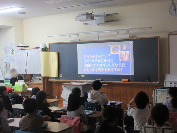 朝の時間は、図書委員会による「図書集会」の放送でした。ブックランドからのお願い、読書キャンペーンの紹介と図書委員によるビブリオバトルを行いました。ビブリオバトルの勝敗は見ていた子どもたちが決めます。結果はいかに!?