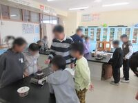 理科室では5年生がものの溶け方の学習で、食塩とミョウバンの溶けた水溶液を蒸発させる実験をしていました。水分が蒸発して、白いものが現れたときに「なんだこれ?」「なんかにおう」という声が聞こえました。現れたものは一体何なのでしょう?実験を通して学びを深めてほしいです。