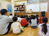 1/19の放課後スクールは、自主学習のあとにまず紙芝居「おひなさまになったにんぎょう」の読み聞かせを行いました。絵を見ながら先生のお話を聞き、子どもたちは想像を膨らませてストーリーを楽しんでいました。