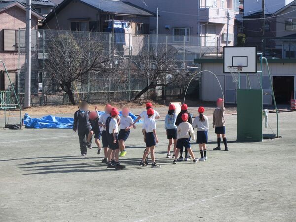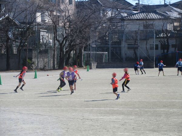 校庭で4年生が体育でタグラグビ―に取り組んでいました。どうすれば、タグを取られないか、どうすれば取れるかを考えながら、仲よく活動していました。