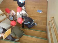 2年生が1mの物差しを使って身の回りにあるものの長さを測っていました。友達と協力しながら、あちらこちらで色々なものを測っていました。実際に測ることで、思ったより長かった、短かったとわかり、長さの感覚も豊かになりますね。