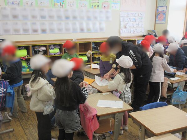 業間休みに、今年度最後、3学期のはぴねすタイム(たて割り活動)を行いました。1・6年生、3・4年生は教室で、2・5年生は校庭で活動しました。グループにも慣れ、各グループとも、みんなで仲よく楽しんでいる姿が見られました。はぴねすタイムはやさしさが広がって素敵だな、と感じました。