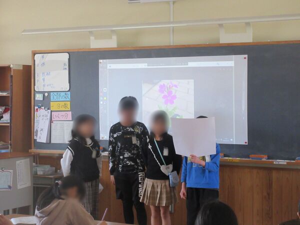 4年生が総合的な学習の時間で調べたさくら草について、発表会をしていました。自分たちで芽植えをして、今年は芽出しをしました。身近なさくら草のことがより深く分かったのではないでしょうか。