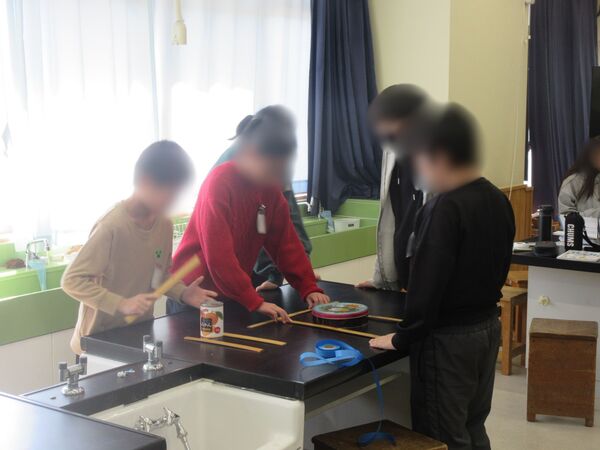 5年生が算数の学習で身の回りの円の円周と直径の関係を調べていました。円周は直径の何倍なのかを調べているのです。