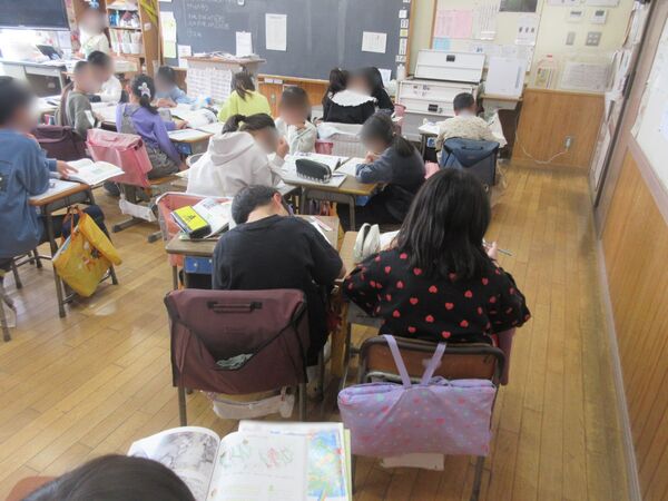 2年生が廊下でなわとびを練習していました。よく見ると、教室でもいろいろなことに取り組んでいました。授業参観に向けての準備のようです。楽しみですね。